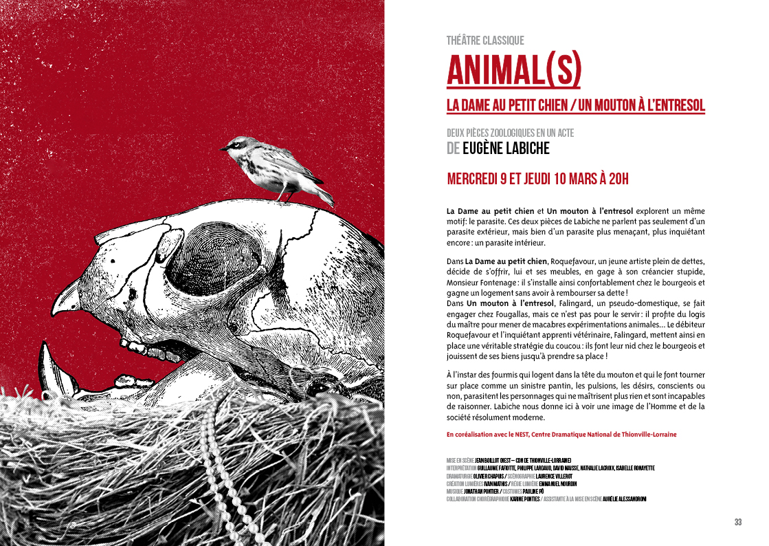La Dame au petit chien et Un mouton à l’entresol explorent un même motif: le parasite. Ces deux pièces de Labiche ne parlent pas seulement d’un parasite extérieur, mais bien d’un parasite plus menaçant, plus inquiétant encore : un parasite intérieur.