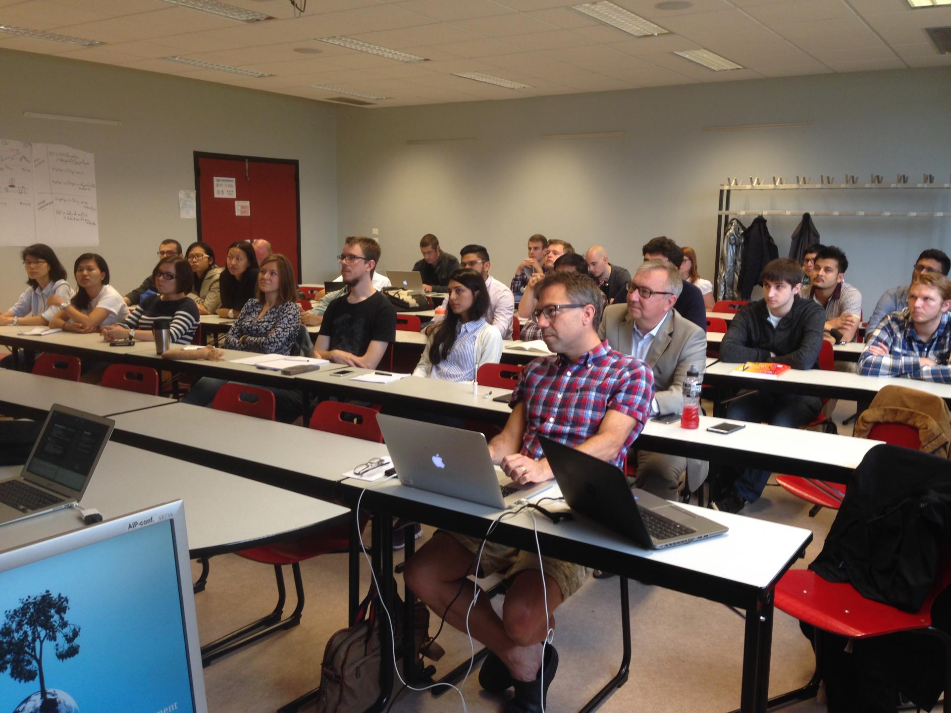 Le mercredi 2 septembre 2015, l’AIPL situé sur le campus de la faculté des sciences de Nancy a accueilli la nouvelle promotion PERCCOM composée de 19 étudiants de 15 pays différents. Pour cet événement, l’équipe pédagogique du consortium PERCCOM était à Nancy et a présenté le programme développé dans chaque Université (Université de Lorraine, Université de Lappeenranta, Université de Lulea, Université de St Petersburg et Université de Leeds). Trois anciens étudiants sont venus pour donner des conseils et des renseignements pratiques sur ces deux années de formation à l’international. L’après-midi, tout le monde a pu continuer à échanger durant un repas et des parties de Bowling.