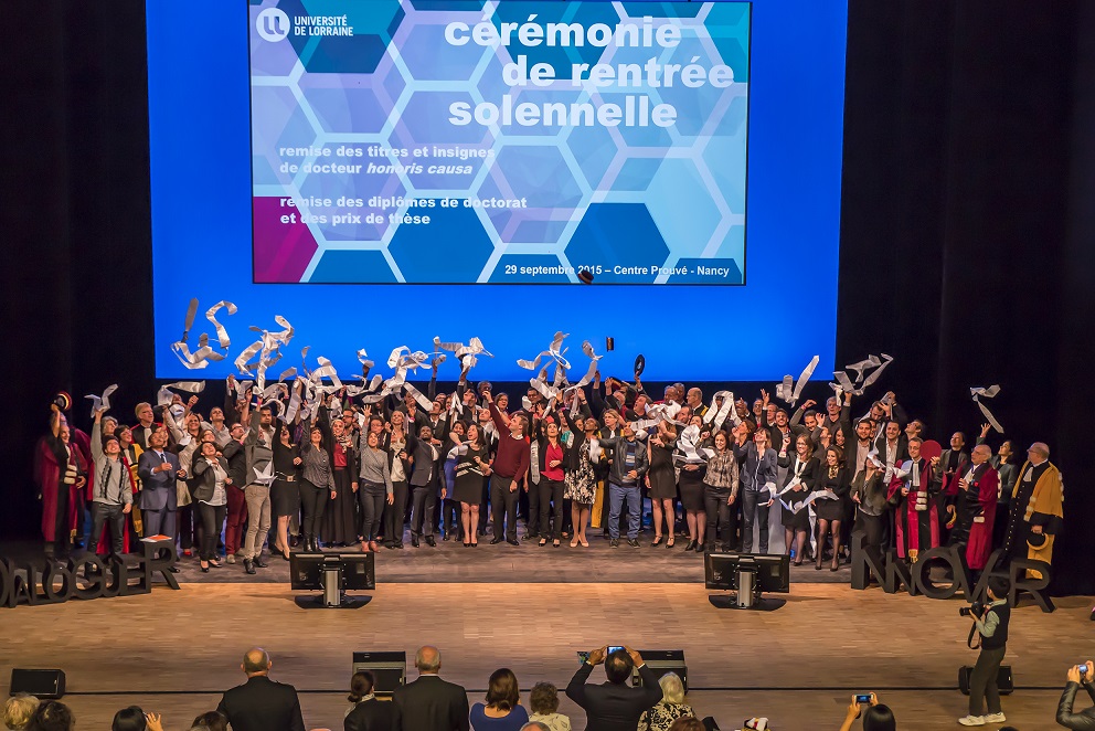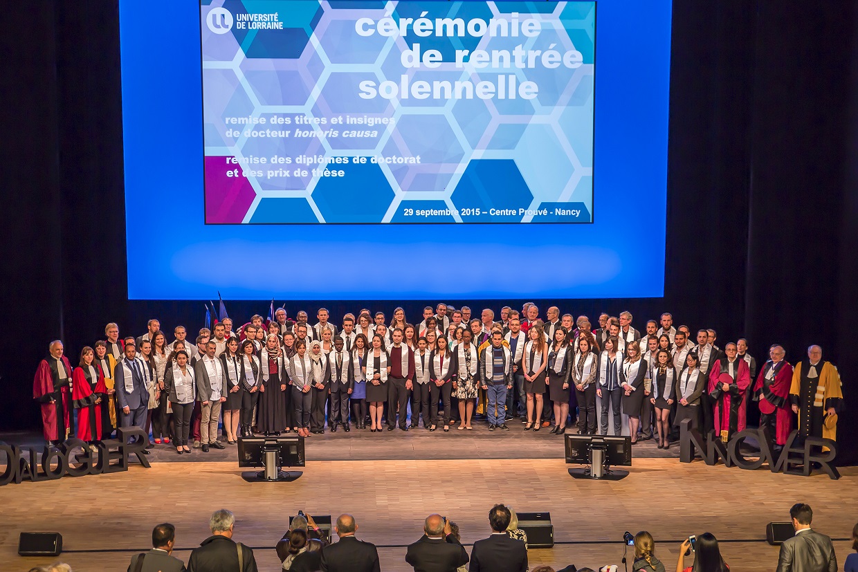 La cérémonie de rentrée a eu lieu le 29 septembre au Centre Prouvé à Nancy. A cette occasion, 2 chercheurs étrangers se sont vus remettre les titres et insignes de docteur honoris causa et 150 docteurs ont reçu leur diplôme.