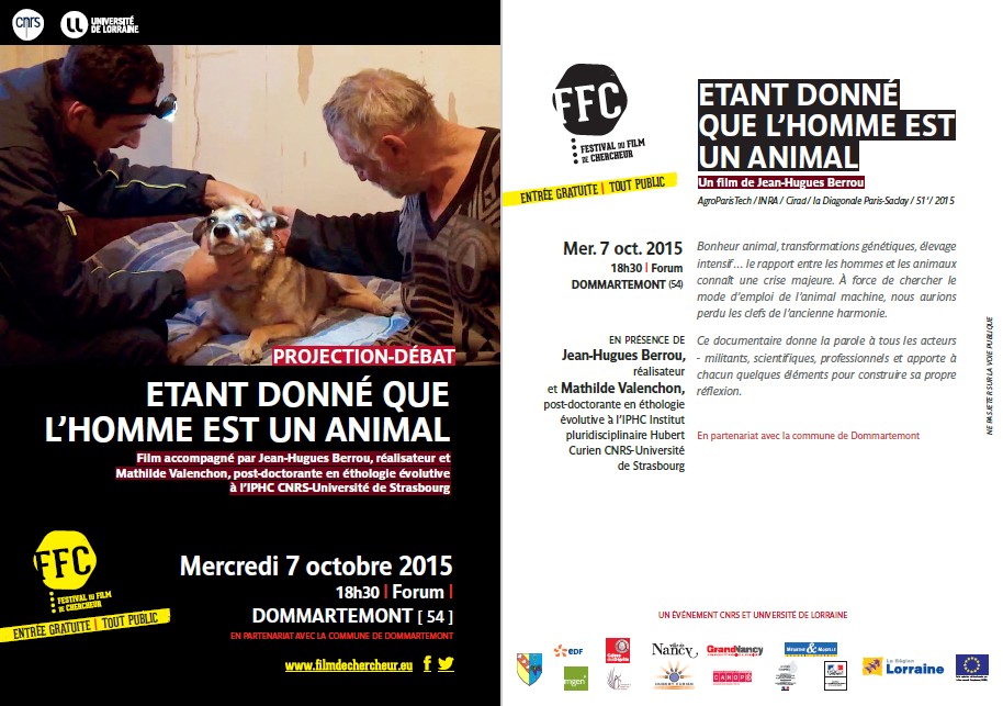 La projecton sera suivie d'un échange en présence de Jean-Hugues Berrou,réalisateur et Mathilde Valenchon, post-doctorante en éthologie évolutive à l’IPHC Institut pluridisciplinaire Hubert Curien CNRS-Université de Strasbourg