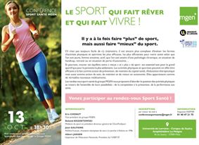 L'Université de Lorraine, en partenariat avec la MGEN,organise une conférence sur le sport au campus du Saulcy, à l'amphithéatre LeMoine.