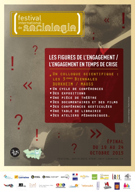 Le colloque scientifique, qui se déroulera du jeudi 22 octobre au samedi 24 octobre 2015 au Centre des Congrès d'Epinal, portera sur "Les figures de l'engagement. L'engagement en temps de crise", mais le Festival essaimera dans toute la ville à partir du lundi 19 octobre 2015.
