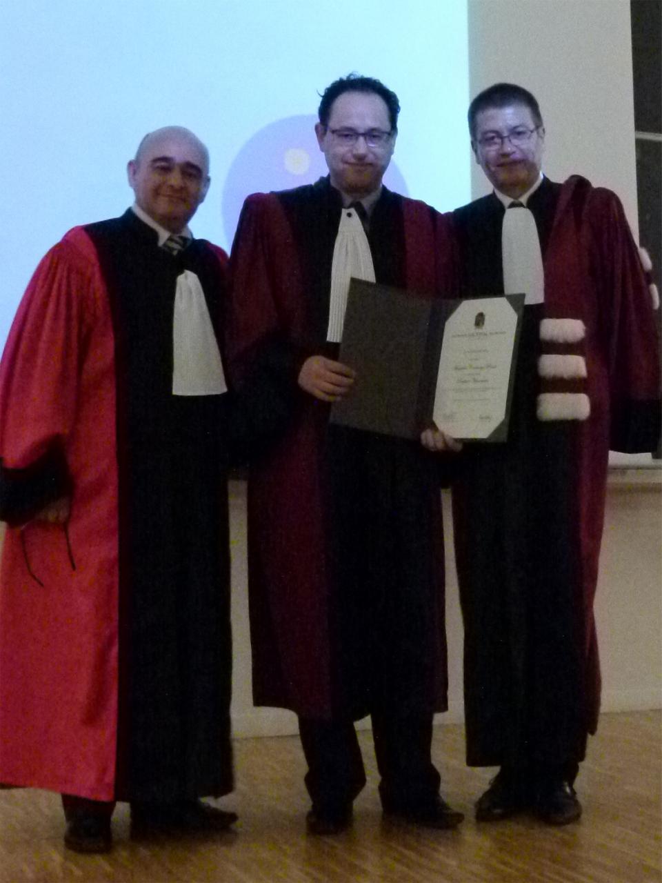 Après Laure Morel, nommée en 2014, c'est Mauricio CAMARGO, Enseignant-Chercheur à l'ENSGSI qui vient de recevoir le titre de Professeur Honoraire de l'Université de Bogota en Colombie (UNAL). Cette distinction lui a été remise le samedi 17 octobre 2015 par le Doyen de la Faculté d'Ingénierie de la UNAL Ismael Pena, présent à Nancy à l'occasion de la remise de diplômes de l'ENSGSI.