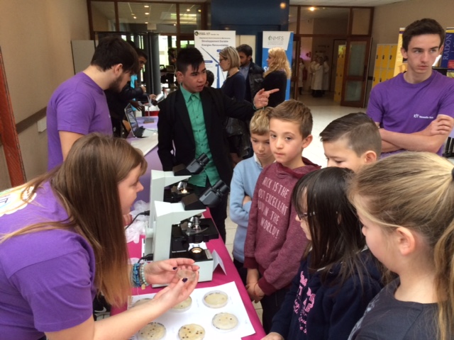 Vendredi 16 Octobre, les étudiants du Département Génie Biologique et du Département Génie Industriel et Maintenance de l’IUT de Thionville-Yutz dévoilaient leur passion des sciences autour de stands d’observations et de manipulations à destination des scolaires du Bassin Thionvillois. Ce sont environ 200 élèves (écoles primaires et collèges) qui ont pu découvrir les sciences à travers différents thèmes allant de la biodiversité à la qualité de l’eau en passant par les énergies renouvelables, les nouvelles techniques avancées de maintenance, l’hygiène alimentaire et la fabrication du yaourt.