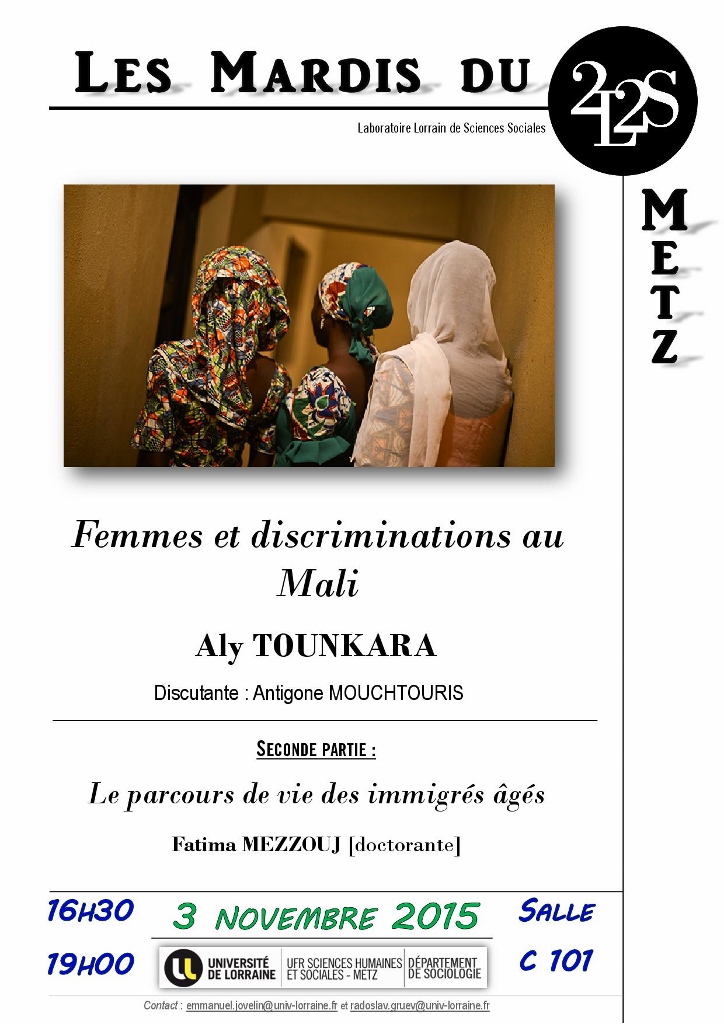 Nous recevons Aly TOUNKARA sur le thème de "Femmes et discriminations au Mali" et Fatima MEZZOUJ qui nous parlera des "Parcours de vie des immigrés âgés"