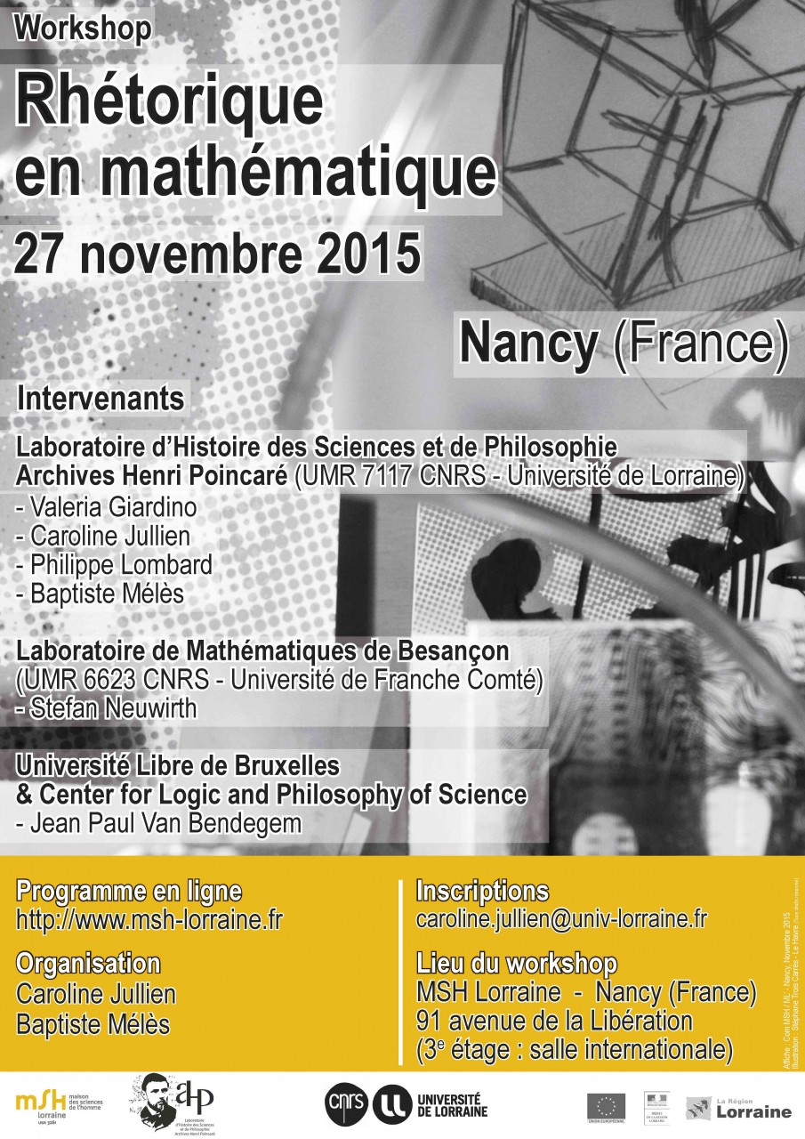 Date(s): Vendredi 27 novembre 2015 Lieu(x): MSH Lorraine - Salle Internationale 91 Nancy mathématiquesphilosophieMSH Lorraine