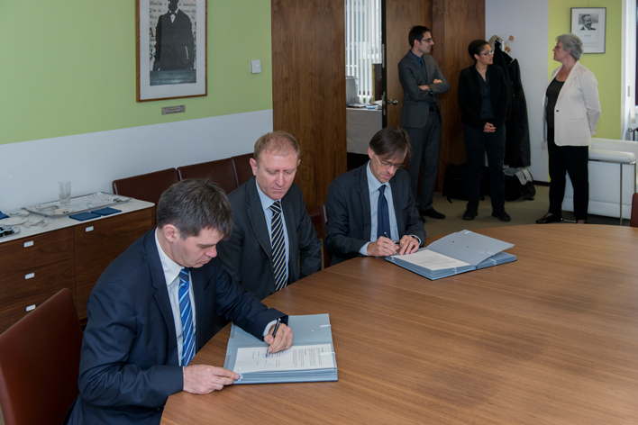 M. Frédéric STASIAK, Directeur du Collegium Droit, Economie, Gestion et par délégation du Président de l’Université de Lorraine ; Antony KUHN, Directeur de l’ISAM-IAE Nancy et M. Eduardo RUIZ GARCIA, Secrétaire Général de la Cour des Comptes Européenne se sont rassemblés à Luxembourg, le mardi 13 octobre 2015, pour procéder à la signature de la convention de partenariat.