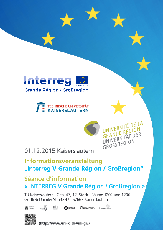 Le nouveau programme de soutien financier « Interreg V-A Grande Région/ Großregion » offre aux chercheurs, aux institutions ainsi qu’aux acteurs de la Grande Région la possibilité, de recueillir des aides financières pour des projets transfrontaliers. L’UniGR invite tous les intéressés à une réunion d’information qui aura lieu le 1er décembre 2015 à l’Université technique de Kaiserslautern. Y seront présentés les contenus et objectifs et les démarches pour le dépôt des demandes.