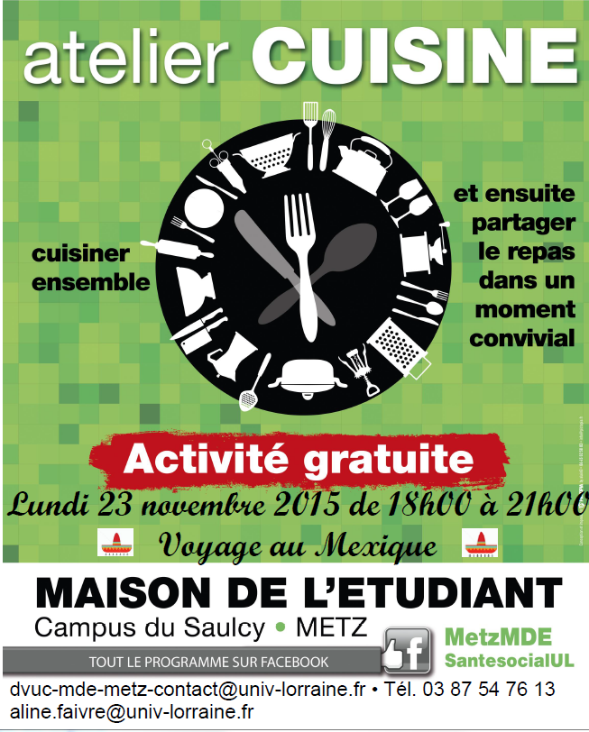 La diététicienne du Sumpps (Service universitaire de médecine préventive et de promotion de la santé) de l'Université de Lorraine propose aux étudiants un atelier cuisine, pour apprendre à manger malin, pas cher et équilibré, le tout en toute convivialité !