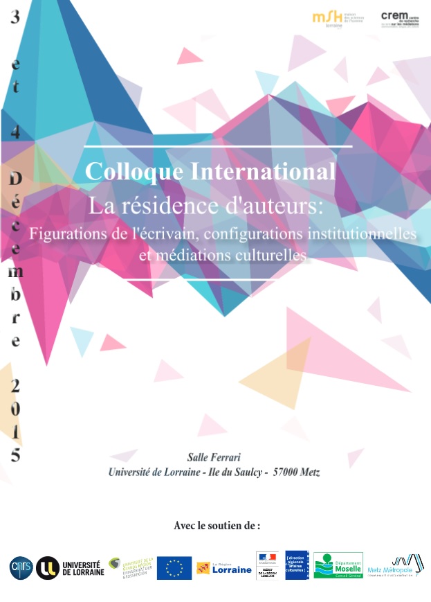 Le colloque international du projet de recherche RESICREAMEDIA se déroulera à Metz les 3 et 4 décembre prochains, sur le thème : "La résidence d'auteurs : Figurations de l'écrivain, configurations institutionnelles et médiations culturelles".