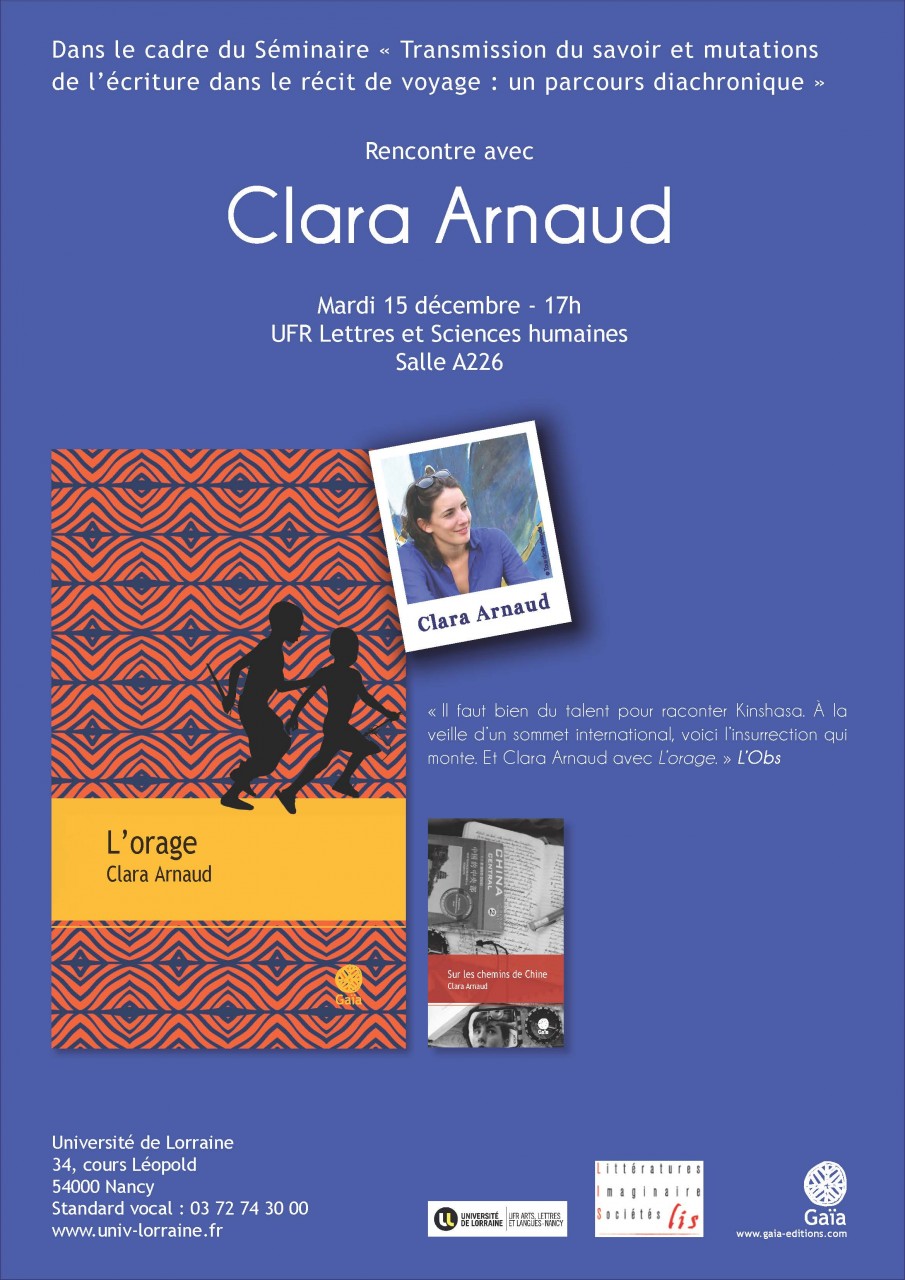 Dans le prolongement du séminaire « Transmission du savoir et mutations de l’écriture dans le récit de voyage », et à l’issue d’un parcours chronologique qui nous a conduits de l’Antiquité au XXe siècle, Clara Arnaud viendra nous parler du rapport qu’un écrivain contemporain entretient avec la vocation traditionnellement informative du voyage et de son récit, à une heure où le tourisme et les nouveaux moyens de communication mettent tout un chacun en relation directe avec les contrées les plus lointaines.