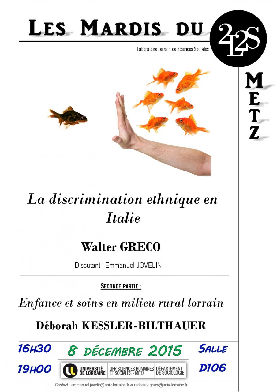 En première partie nous aurons le plaisir de recevoir Walter GRECO de l'Università della Calabria (Italie) qui abordera la question de la discrimination ethnique en Calabre.