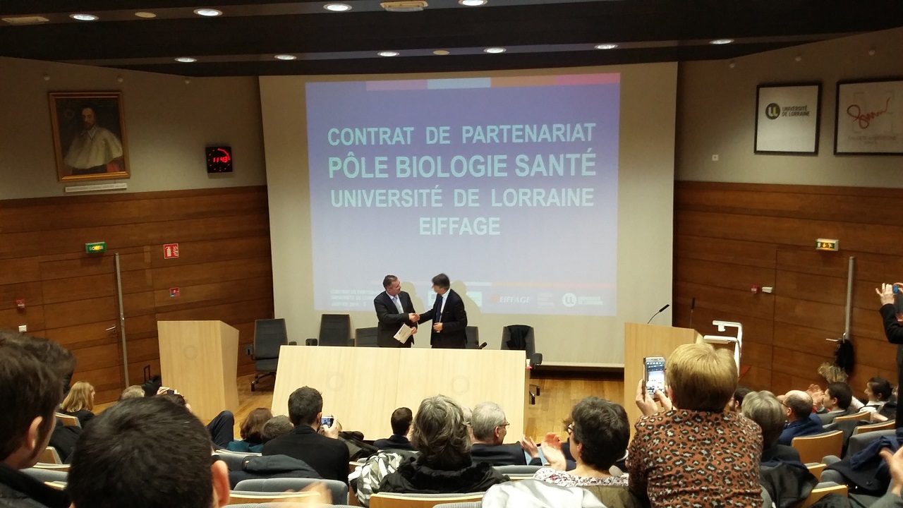 L’Université de Lorraine a signé avec Eiffage, au travers d’Eiffage Concessions, un contrat en Partenariat Public-Privé pour le financement des constructions neuves (14 900 m2) et la première partie des aménagements extérieurs du projet de restructuration du pôle Biologie-Santé à Vandoeuvre-Lès-Nancy. Ce contrat est signé pour une durée de 27 ans et un investissement de 52,4 M€ TTC. Les réhabilitations du bâti existant et de la seconde partie des aménagements extérieurs seront conduites par l’Université de Lorraine sous Maîtrise d’ouvrage publique.