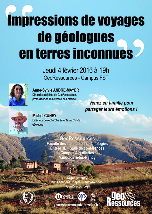 GeoRessources et SGA Student Chapter Nancy-Rennes ont le plaisir de vous inviter à une conférence-débat