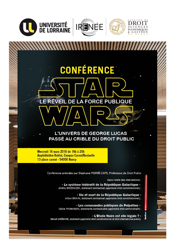 « Les commandes publiques de Palpatine », Cécile THOMASSIN, doctorante contractuelle (approche droit administratif) ;