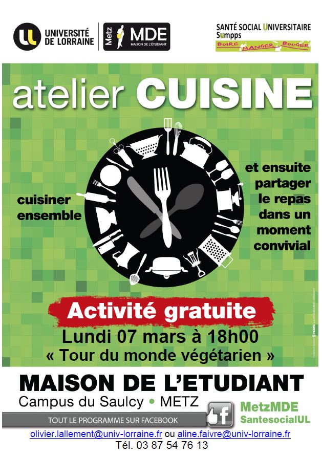 Pour vous inscrire, envoyez un courriel à olivier.lallement@univ-lorraine.fr en laissant nom, prénom, ufr et numéro de téléphone.