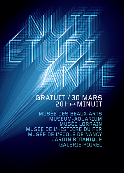 Comme chaque année, les musées de Nancy ouvrent leurs portes gratuitement aux étudiants le temps d'une soirée, de 20h à minuit, pour une programmation spéciale cinéma : animations, visites, spectacles, projections, etc.