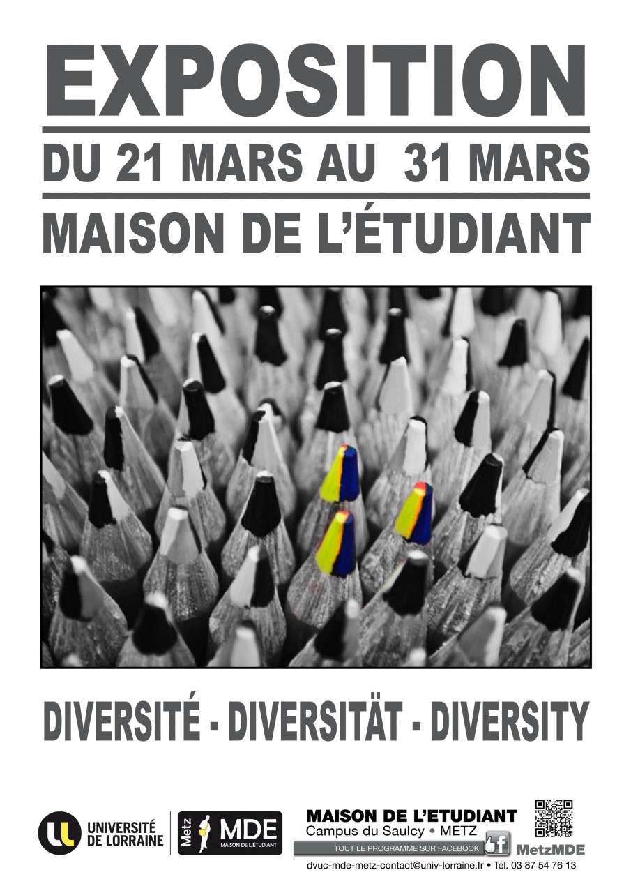 L’exposition « Diversité – Diversität – Diversity » regroupe une partie des photographies, dessins et collages réalisés par des étudiant(e)s de l’UFR Arts, Lettres et Langues dans le cadre de la Semaine d’Education et d’Actions contre le racisme et l’antisémitisme.