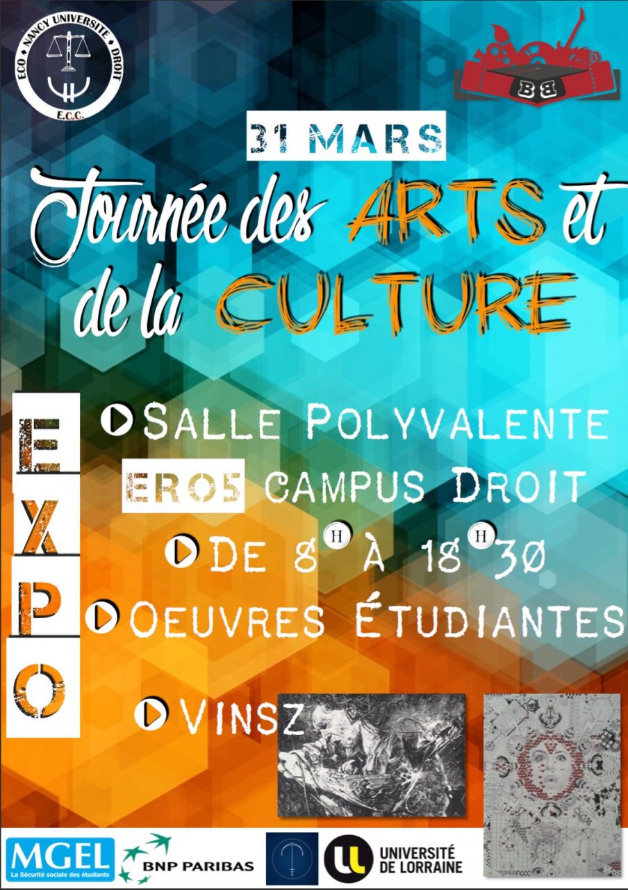 Expo d'oeuvres étudiantes et de Vinsz, le jeudi 31 mars 2016 de 8h à 18h30 dans la salle polyvalente ER05 du campus Droit, place Carnot à Nancy.