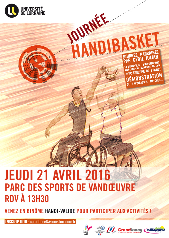 RDV au Parc des Sports de Vandoeuvre le 21 avril à partir de 13h30 pour assister à des démonstrations, des matches mais également participer à ces activités. Cette journée est parrainée par Cyril Julian, ex-basketteur professionnel, vice-champion olympique avec l'équipe de France en 2000.