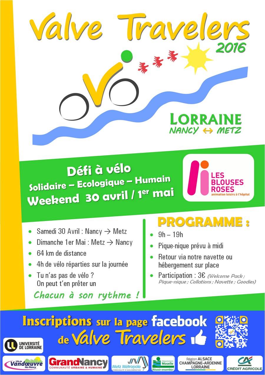 Association étudiante, Valve Travelers invitent tous les étudiants de l'Université de Lorraine à venir pédaler pour rejoindre les deux métropoles Nancy et Metz le samedi 30 avril et/ou dimanche 1er mai 2016.