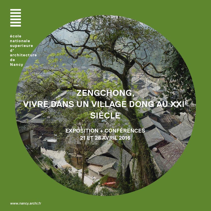 Zengchong est un village situé dans la province du Guizhou en Chine. Enchâssé dans une boucle de rivière à 640 m d'altitude, il est entouré de collines découpées en terrasses. Le village constitue un ensemble bâti remarquable dans un environnement préservé comme en témoigne la « Tour du tambour », classée au niveau national, et les « ponts du vent et de la pluie », lieux de rassemblements quotidiens et festifs. La population, majoritairement composée de l'ethnie Dong possède une maîtrise ancienne des systèmes hydrauliques pour l'irrigation et la canalisation des eaux. Dans le cadre de cette exposition, deux conférences sont prévues à l'Ecole nationale supérieure d'architecture de Nancy les 21 et 28 avril prochain.