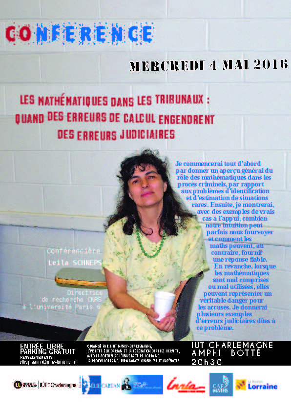 En revanche, lorsque les mathématiques sont mal comprises ou mal utilisées, elles peuvent représenter un véritable danger pour les accusés. Je donnerai plusieurs exemples d'erreurs judiciaires dûes à ce problème."