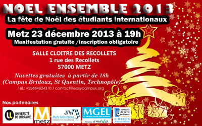 L’association Inter-Cultures Promotion (AICP) organise cette année la 3ème édition de son repas de Noël en faveur des étudiants étrangers de l'agglomération messine, intitulée « Noël Ensemble ».