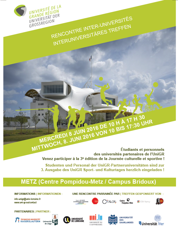 Dans le cadre de l'Université de la Grande Région - UniGR, l'Université de Lorraine est heureuse d’accueillir cette année la 3e édition de la Journée culturelle et sportive de l'UniGR.