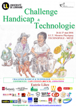 Nous vous invitons avec plaisir à ce brunch "cité accessible" organisé dans le cadre de la dynamique Santé Autonomie et Innovation en Lorraine et du Challenge Handicap et Technologie qui se déroule du 25 au 27 mai 2016 dans les locaux de l’IUT Mesures Physiques.