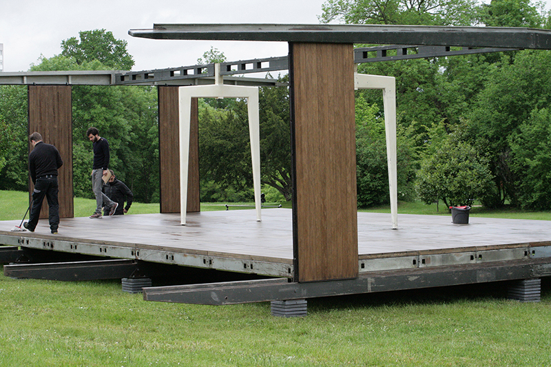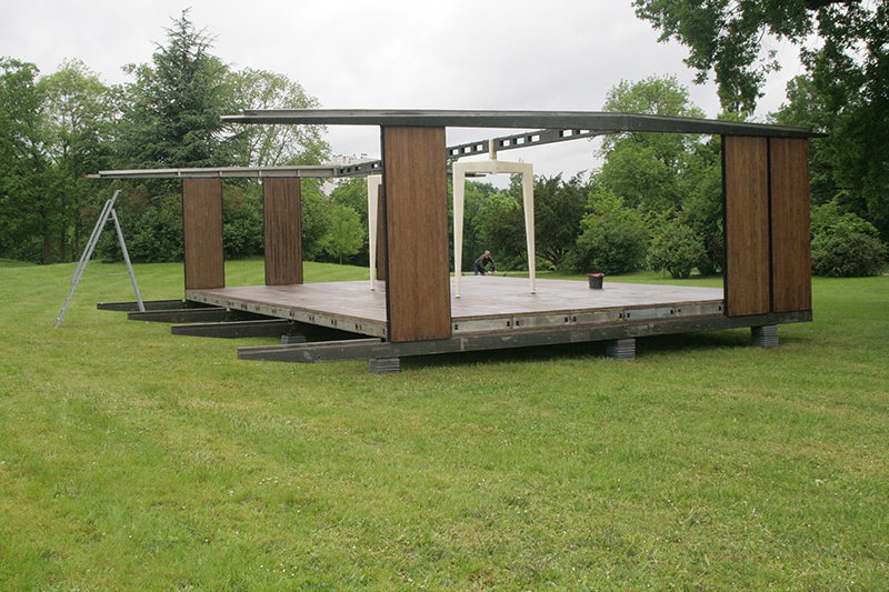 Du 16 au 25 mai, la galerie Patrick Seguin de Paris, fait remonter le Bureau d’Études (1948) de Jean Prouvé dans le Parc de Montaigu.