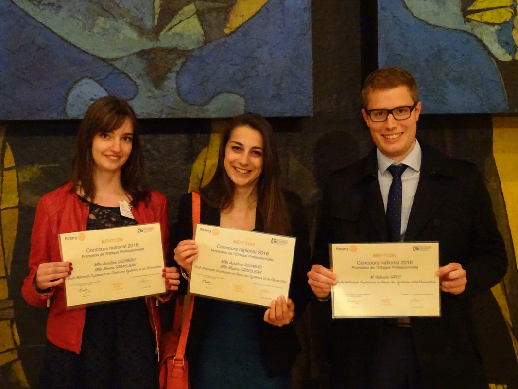 Comme chaque année, des élèves-ingénieurs de l'ENSGSI ont participé au concours National de la "Promotion de l'éthique professionnelle" organisé par le Rotary et la Conférence des Grandes Ecoles.