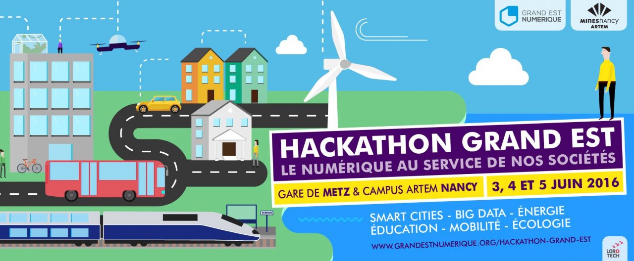 Vous souhaitez relever le challenge ? Alors rendez-vous les 3, 4 et 5 juin 2016 à Mines Nancy sur le campus Artem et à Metz (Gare SNCF) pour participer au 1er Hackathon organisé conjointement par Mines Nancy et l'association Grand Est Numérique, autour du thème "Le numérique au service de nos sociétés".