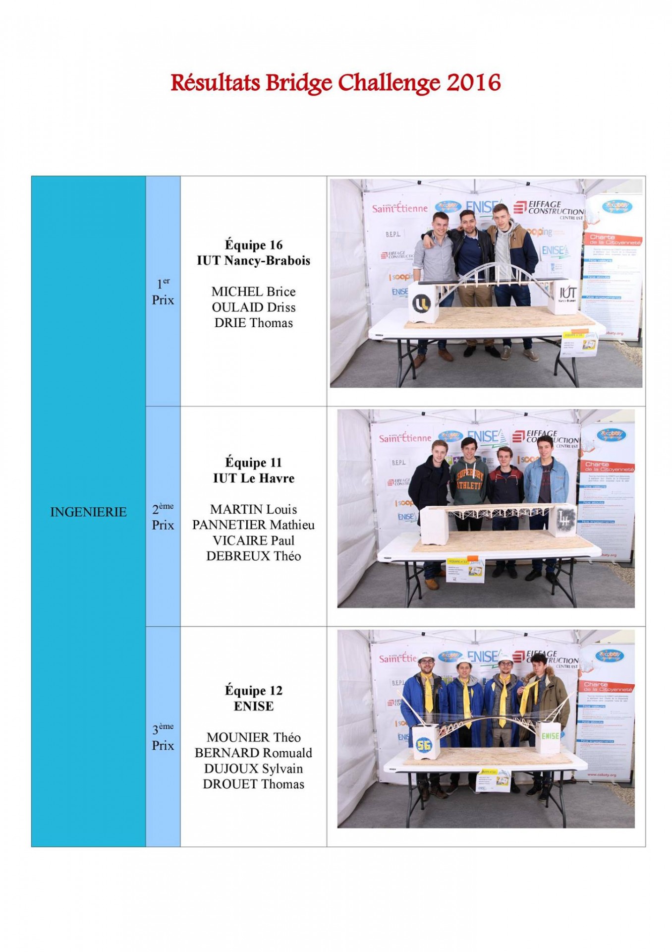 Le 20 mars dernier déjà, lors du Bridge Challenge de l'ENISE à St Etienne, 3 étudiants avaient gagné le 1er prix ingénierie devant les écoles d'ingénieurs.