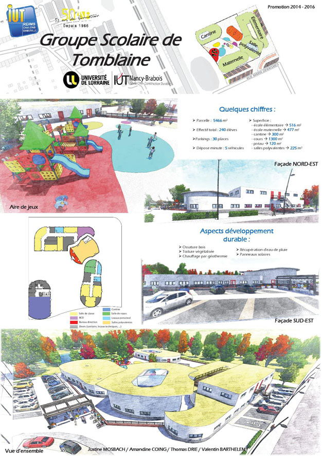 - COING Amandine, DRIE Thomas, MOSBACH Justine et BARTHELEMY Valentin ; étudiants de 2ème année pour leur projet de création d'un complexe scolaire pour la commune de Tomblaine