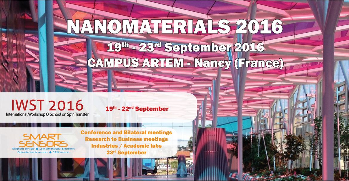 L'équipe "Nanomagnétisme et électronique de spin" de l'Institut Jean Lamour organise la 7ème édition de la conférence internationale "Nanomaterials", du 19 au 23 septembre 2016 à Nancy, sur le campus Artem.