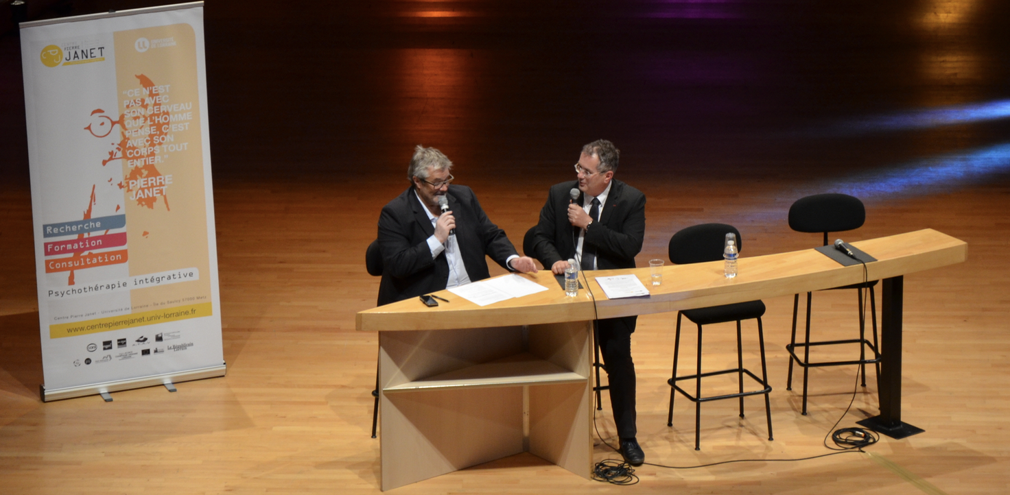 C'est d’abord le Président de l’Université de Lorraine, Pierre MUTZENHARDT qui a rappelé l’histoire de la création de ce nouveau dispositif. Depuis plus de 5 ans maintenant le Professeur Cyril TARQUINIO et Edith MAGGIPINTO n’ont eu de cesse de convaincre leurs interlocuteurs tant au cœur même de l’Université de Lorraine qu’à l’extérieur. L’Université de Lorraine a depuis le début de cette aventure mobilisé les moyens nécessaires pour que ce projet se développe et devienne ce qu’il est aujourd’hui. Le Directeur du Centre Pierre Janet, Cyril TARQUINIO a quant à lui rappelé ce qui a motivé l’initiative de ce projet. Prendre en charge la souffrance humaine, transmettre le métier aux nouvelles générations d’étudiants, développer de nouvelles connaissances, permettre à tous, riches ou pauvres d’accéder à des soins de qualité, sont autant de dimensions qui structurent l’idée de ce centre. Les échanges devant le public entre Franck ROUYER animateur de la soirée et le Professeur Cyril TARQUINIO ont ainsi permis de mieux cerner ce qu’est le Centre Pierre Janet. Beaucoup ont pu prendre la mesure des dimensions et des enjeux de ce centre tant sur le plan local, national, qu’international.