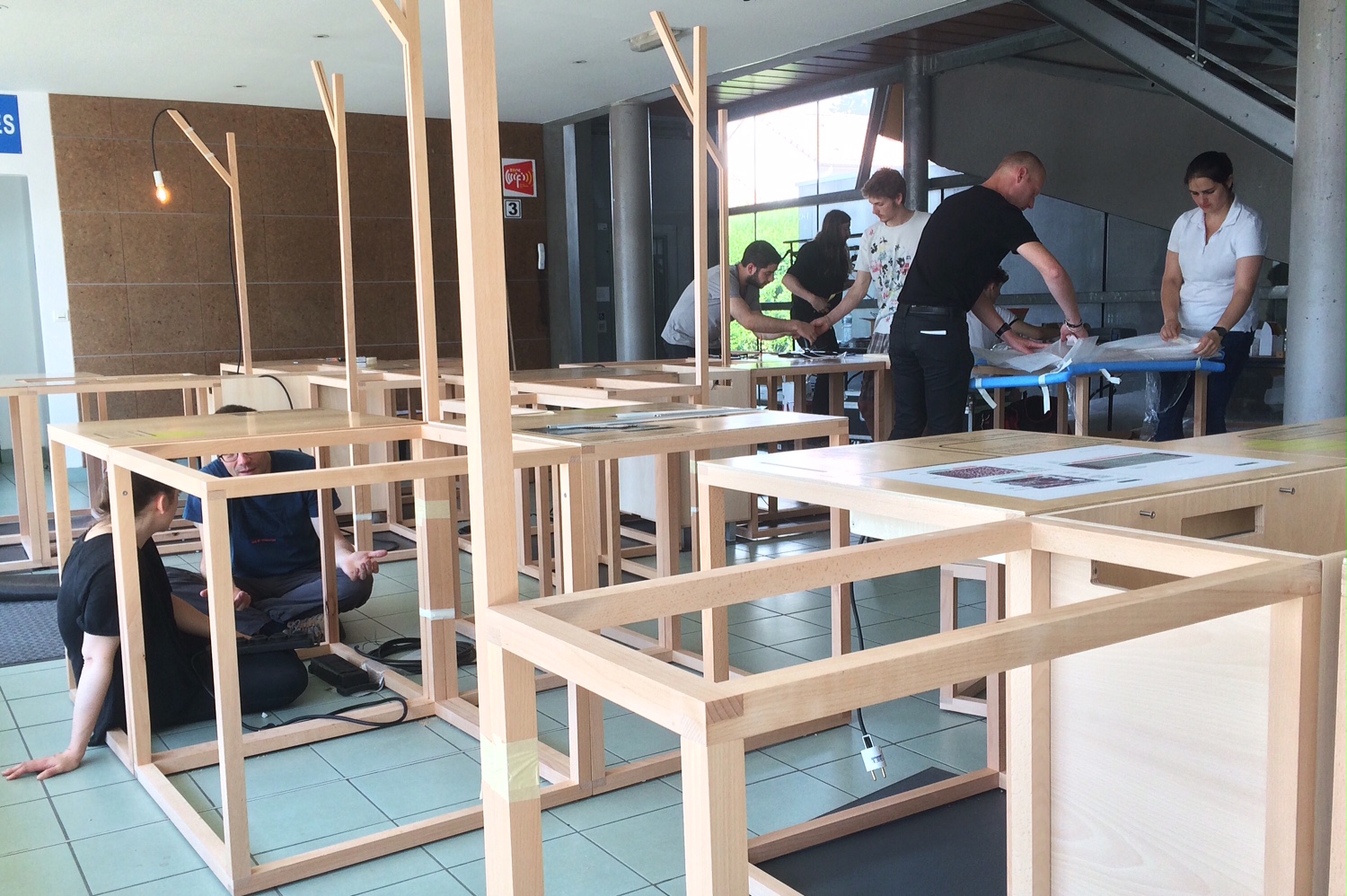 Ils ont pesé, percé, poncé, collé, vissé, verni... L’exposition Ça déboite ! est presque prête. Début juillet, elle s’est montée pour la première fois dans les locaux de l’ENSTIB, « l’école du bois » spinalienne, avec l’aide des étudiants qui ont participé à sa construction.
