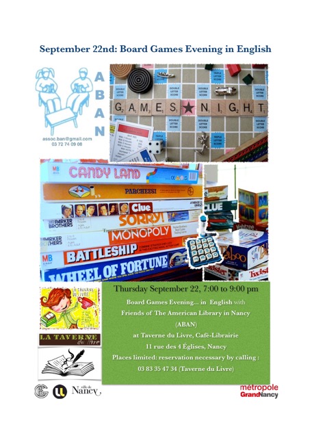 Soirée de Jeux de Société en anglais, tous niveaux et tous publics bienvenus.