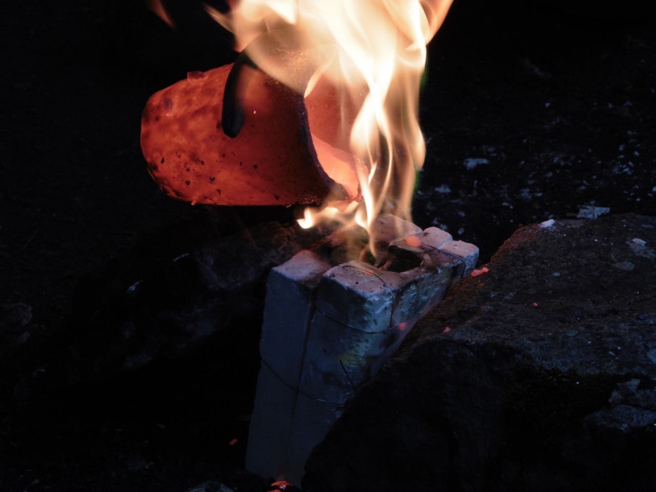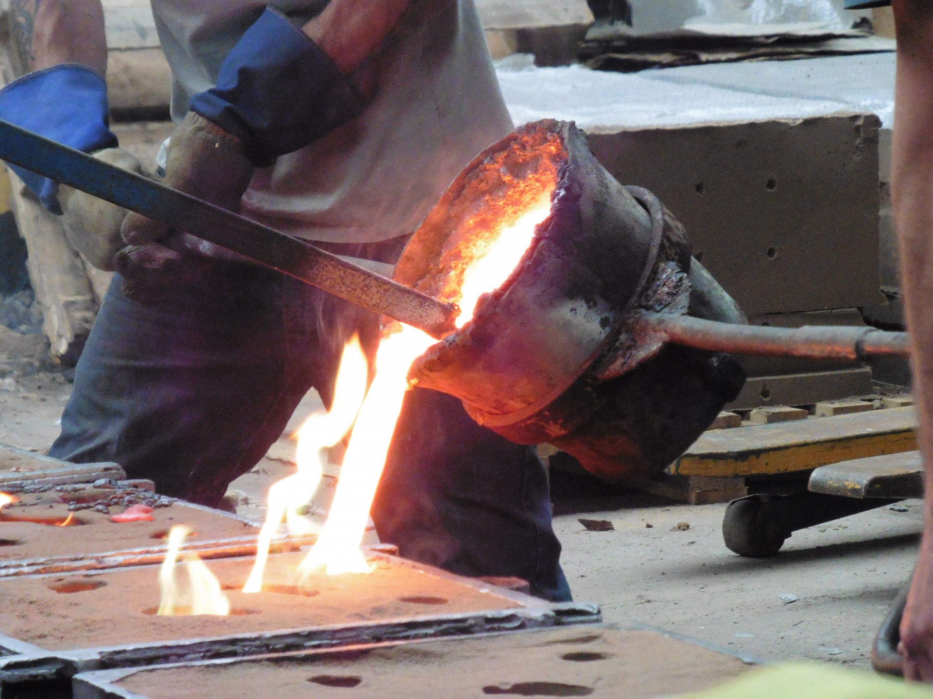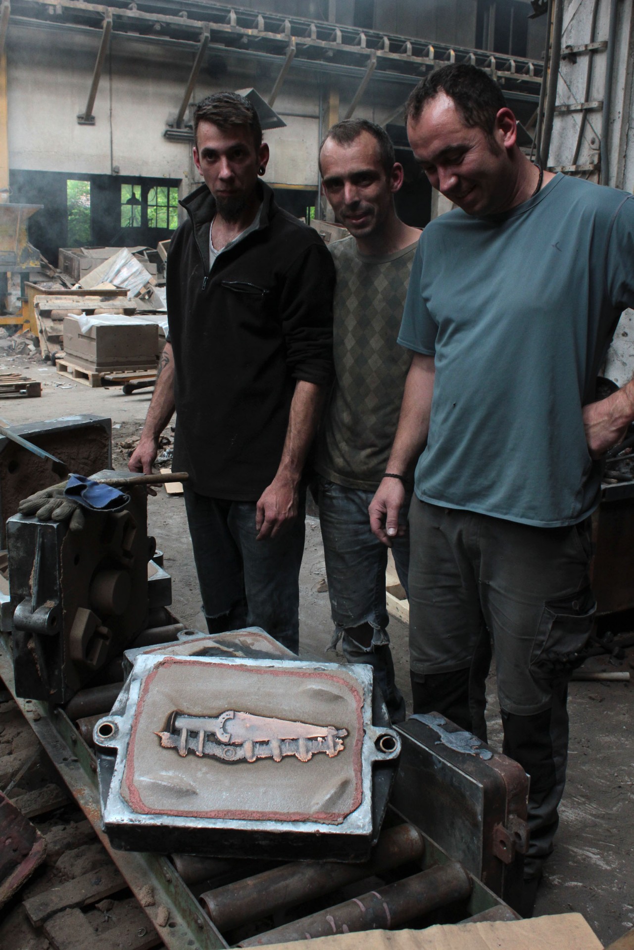 Pour tester les capacités de coulée modernes, plusieurs moules ont été réalisés par les ouvriers de la fonderie. La finesse de la lame, les incisions présentes en surface, l’insertion de la garde, constituent les points les plus remarquables mais aussi les plus énigmatiques en termes de conception de cet objet. Et pourtant, ils démontrent s’il en est des capacités intellectuelles et techniques de haut niveau des premiers métallurgistes d’Europe occidentale. La coulée qui a suivi le façonnage des moules a permis de réaliser avec succès un exemplaire de ce poignard. L’analyse des techniques et des gestes mis en œuvre au cours de cette opération devrait permettre d’améliorer notre connaissance des savoir-faire à l’aube de la métallurgie. La démarche paléométallurgique est renforcée lorsque les hypothèses sont testées expérimentalement : en amont de cette opération, les archéologues avaient coulé une première réplique d’après les données archéologiques utilisant des moules en grès des Vosges et des soufflets manuels à partir de modèles ethnographiques. Cette opération hors du temps est le résultat d’une longue coopération et d’un travail entre des archéologues, spécialistes en archéologie des techniques, Jean Sainty fondateur du Centre Expérimental de Préhistoire Alsacienne (CEPA) et Denis Morin, enseignant chercheur à l’Université de Lorraine, rattaché au laboratoire EA 1132, HISCANT-MA.