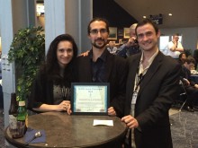 Cette thèse est l’un des aboutissements de la délégation 2010 – 2015 d’Alain Celzard à l’IUF en tant que membre Junior, qui en a assuré la direction avec Vanessa Fierro. Ci-dessous, Maxime avec ses encadrants après la remise du prix.