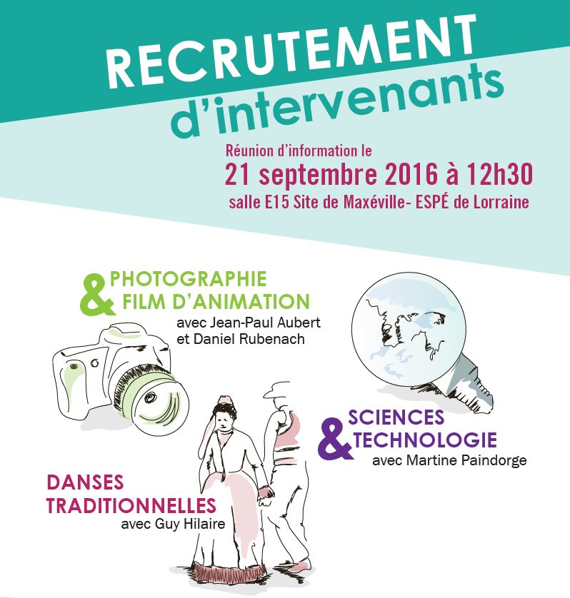 Venez encadrer des activités périscolaires de la ville de Maxéville de 1h à 4h par semaine pour des groupes de 18 enfants du primaire, sur des périodes de 6 à 7 semaines entre la Toussaint et Pâques au tarif d'environ 10 € net de l'heure. Le contenu de l'activité périscolaire est proposé par le formateur de l'ESPÉ. Le formateur assure votre formation et un suivi individualisé lors de la mise en place de l'activité.