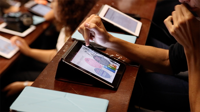À la fin de la session, les étudiants ont été interrogés sur leur ressenti : la majorité était ravie d’avoir participé à une action d’une telle ampleur. Marie B, paneliste de l’enseignement sur papier, a apprécié de pouvoir personnaliser son cours en ajoutant des annotations. Elle admet néanmoins trouver cette méthode moins attrayante et moins motivante. Du coté de l’iBook, Laetitia L. considère cette méthode comme la plus complète, avec une présentation et des animations soignées, les vidéos donnant encore plus de dynamisme. Elle mesure également l’avantage de pouvoir aller à son propre rythme. Ce qui n’est pas le cas des cours en amphi, précise Hugo F. Cependant, il ajoute que le cours en direct reste un moment privilégié avec le personnel enseignant.