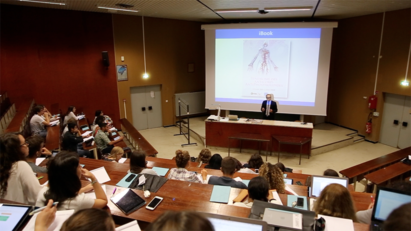 C’est sur le thème du syndrome des anti-phospholipides, que les étudiants ont été évalués avant le cours, puis après le cours, pour mesurer le bénéfice apporté de chaque méthode d’enseignement.