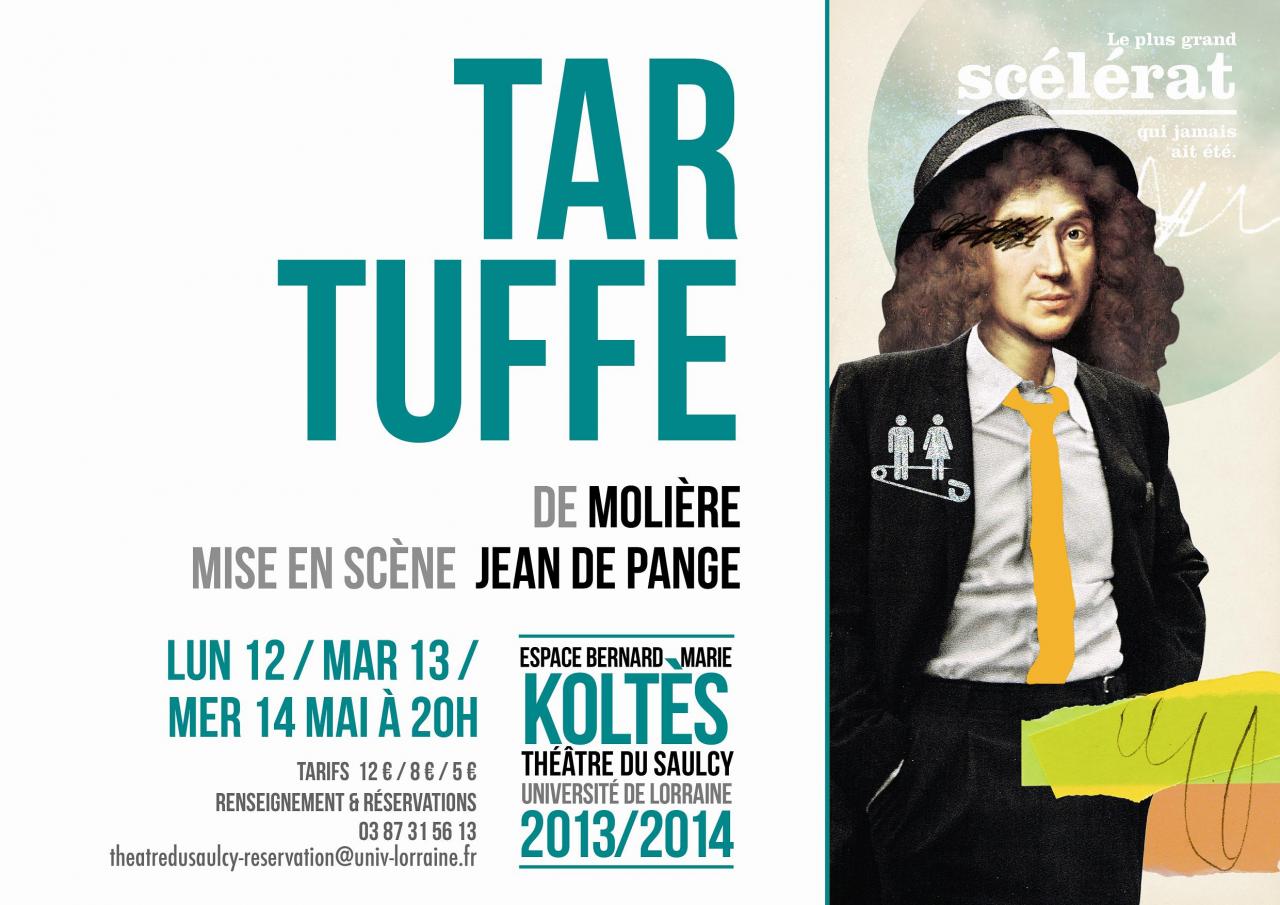 « Si Tartuffe était une guerre, l’espace familial en serait le champ de bataille. Trois ans après notre création de Dom Juan, nous remontons sur notre « ring » et revenons à Molière. Comme une évidence, pourrait-on dire, et (presque) comme si nous ne l’avions pas décidé : une simple lecture un soir de neige et l’affaire était entendue. Nous «traversons » Tartuffe comme nous avions « traversé » Dom Juan. Dans le même espace et le même dénuement. Ainsi l’œuvre est mise à l’épreuve d’un dispositif scénique qui n’a pas été pensé pour elle. C’est d’un travail de plateau et d’un travail de troupe dont il s’agit. Comment ça se parle ? Qu’est-ce qui se joue ? Ce Tartuffe est une version iconoclaste de la pièce, au sens où il est dénué de tout signe esthétique. C’est maintenant une constante dans notre recherche : veiller à ni s’approprier, ni interpréter, mais se concentrer à trouver la distance juste entre l’œuvre et nous. » Jean de Pange.
