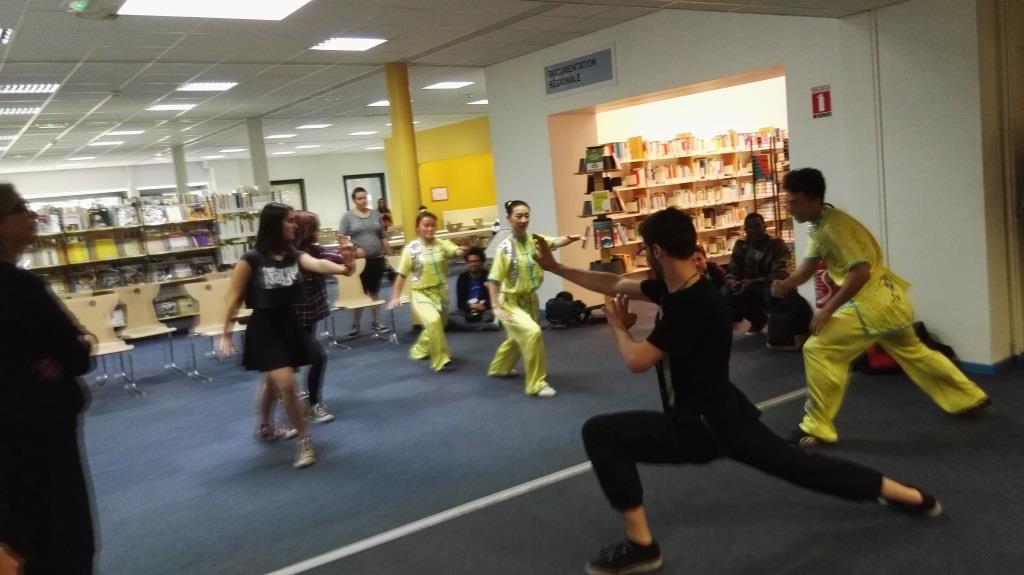 De plus, les étudiants ont également pu apprécier des démonstrations d’Arts martiaux et interactions, proposée par une équipe de dizaine d’étudiants de l’Université de Technologie de Wuhan accueillie par l’Institut Confucius de l’Université de Lorraine dans le cadre de la Journée Internationale des Instituts Confucius.