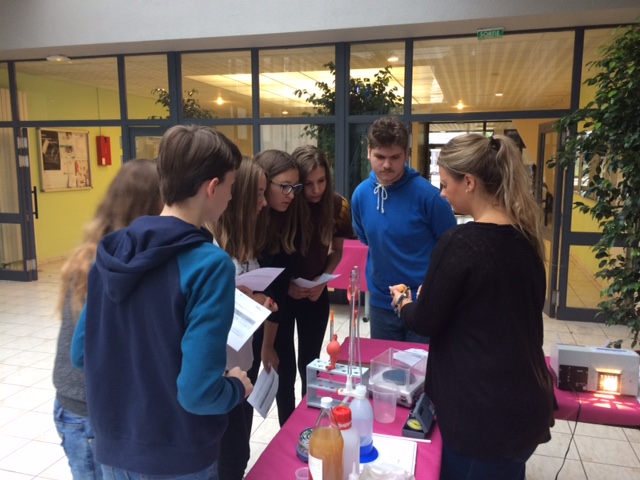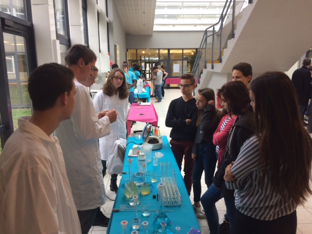 Vendredi 14 octobre, les étudiants du département Génie biologique et du département Génie industriel et maintenance de l’IUT de Thionville-Yutz dévoilaient leur passion des sciences autour de stands d’observations et de manipulations à destination des scolaires du Bassin Thionvillois. C’est environ 200 élèves (écoles primaires, collèges et lycées) qui ont pu découvrir les sciences à travers différents thèmes allant de la biodiversité à la qualité de l’eau en passant par les énergies renouvelables, les nouvelles techniques avancées de maintenance, la récupération du nickel dans les déchets, la décontamination des fruits, le sol, la clarification des jus de pommes, l’analyse sensorielle, ...
