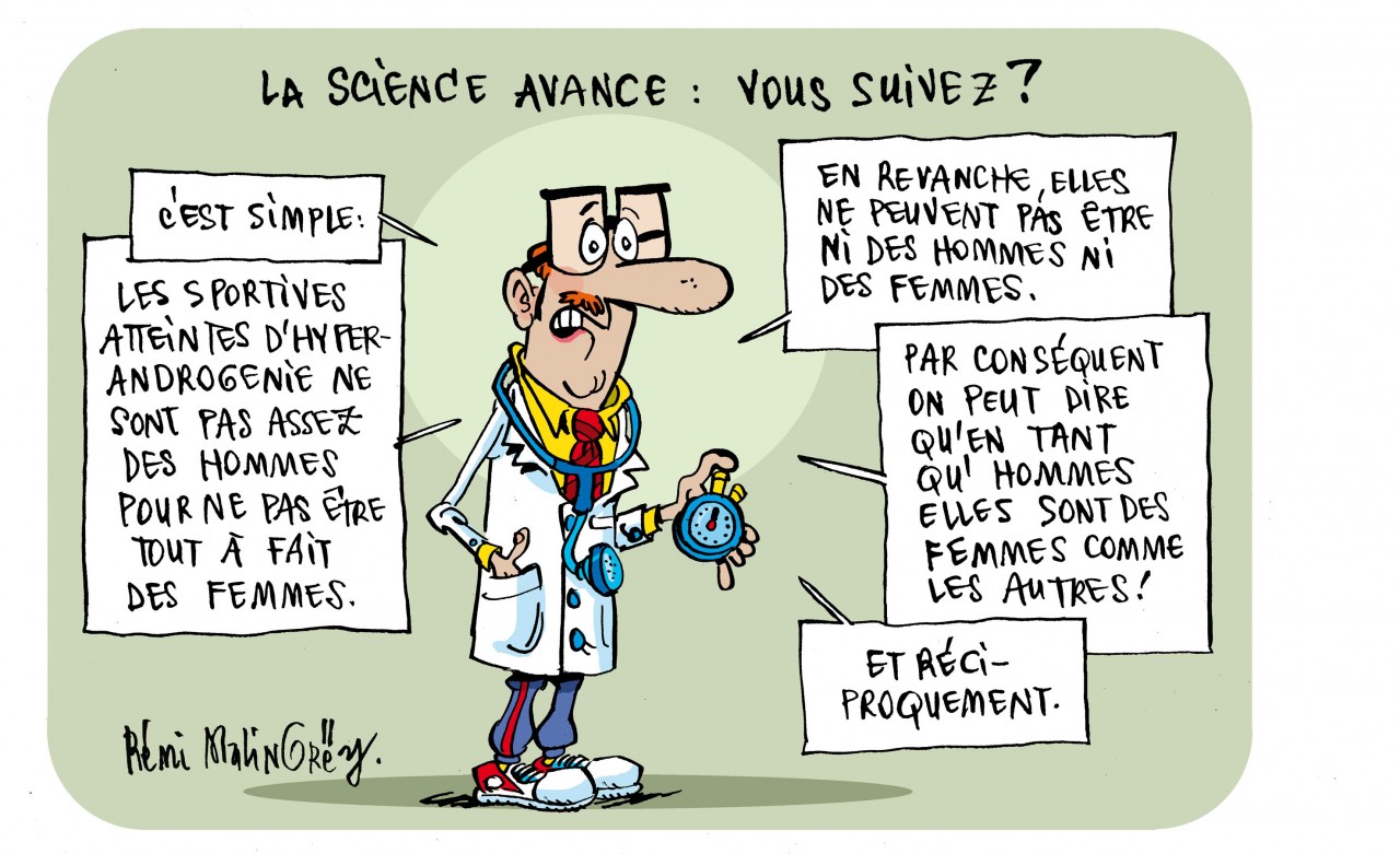 Pire, la dernière science vers laquelle ces organismes se sont tournés (la chimie analytique au service de l’endocrinologie) trace une frontière qui, en stigmatisant les femmes qui ont trop de testostérone, instaure une limite en dessous de laquelle on est une femme et au-dessus, un homme. Elle définit de facto une femme normale comme un homme déficient en testostérone, un sous-homme et, en définitive, on soupçonne d’iniquité la femme exceptionnelle.