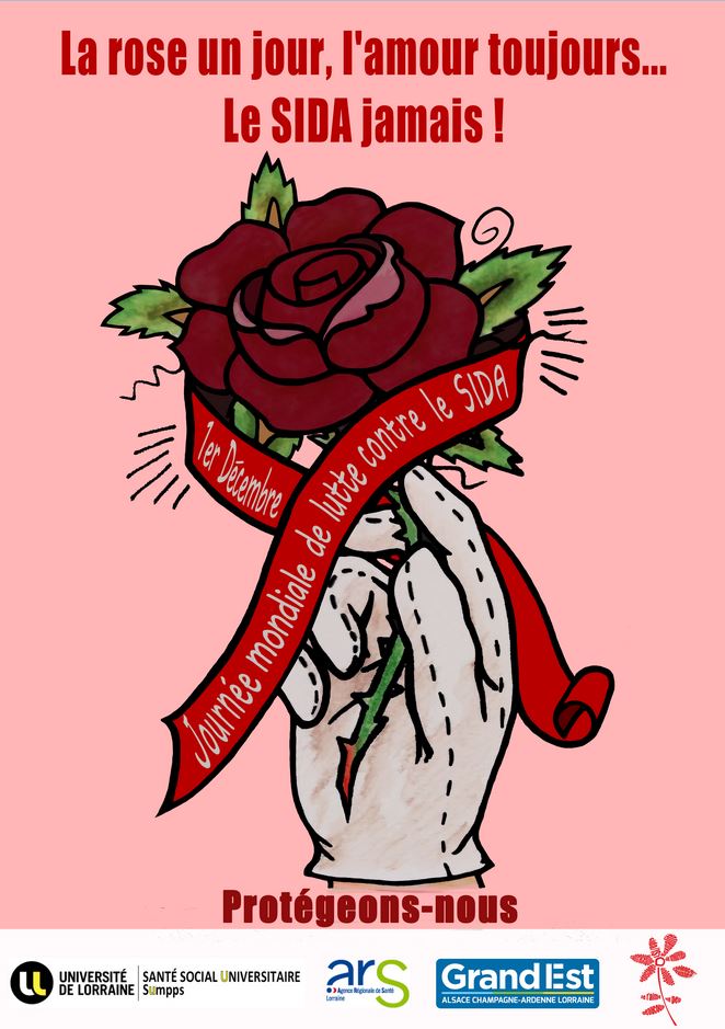 Tous ensemble contre le SIDA à l’Université de Lorraine : Destinée au public étudiant, l'objectif de cette mobilisation est d'informer et de promouvoir encore et toujours le préservatif et le dépistage à l’occasion de la Journée mondiale de lutte contre le SIDA du 1er décembre 2016.