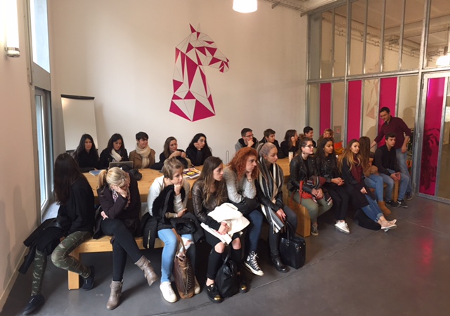 Le 4 Novembre la classe de deuxième année du DUT Information et Communication option publicité de l’IUT Charlemagne a été accueillie au Paddock par André Linh Raoul (président) et par Célia Liebel (chargée de développement).